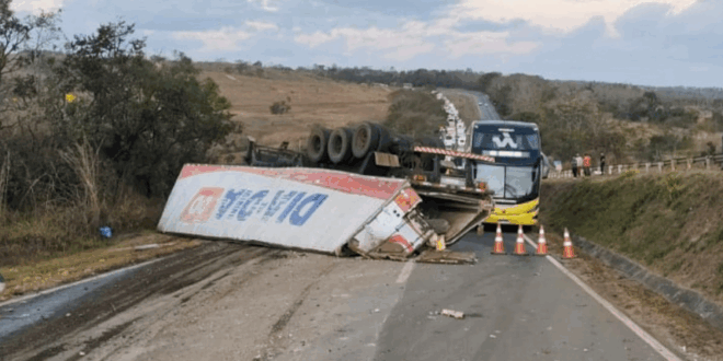 Na manhã desta quinta-feira (28), um grave acidente envolvendo uma carreta-baú provocou congestionamento de quase 8 quilômetros na BR-060, entre os municípios de Abadiânia e Alexânia, sentido Anápolis–Brasília. O veículo tombou por volta das 5h30, interditando totalmente a rodovia nesse trecho.