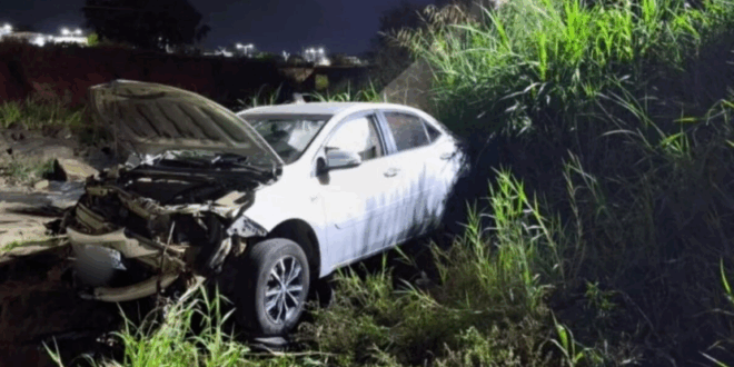Um grave acidente chamou a atenção na noite de quarta-feira (15), no Setor Naves Martins, em Mineiros. Um carro com duas pessoas caiu em um rio após sair da pista na Avenida 05, próximo à Unidade de Pronto Atendimento (UPA) da cidade.