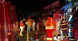 Uma grave colisão envolvendo dois ônibus e dois carros de passeio resultou na morte de uma pessoa e deixou um motorista preso às ferragens na madrugada desta sexta-feira (3), na BR-153, em Campinorte. O acidente aconteceu por volta das 1h45, no km 160 da rodovia, mobilizando equipes do Corpo de Bombeiros de Uruaçu e da concessionária Ecovias Araguaia, responsável pelo …