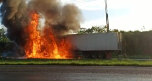 Um caminhão carregado com óleo vegetal pegou fogo na tarde de quarta-feira (12), no km 682 da BR-153, em Itumbiara, no sul de Goiás. De acordo com a Polícia Rodoviária Federal (PRF), o incêndio interditou o trânsito e mobilizou equipes do Corpo de Bombeiros Militar de Goiás e da concessionária Triunfo Concebra, responsável pela administração do trecho. Os dois ocupantes …