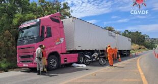 Um grave acidente deixou um motociclista morto na manhã deste domingo (26) na DF-180, em Brazlândia, sentido Padre Bernardo (GO). A colisão envolveu uma carreta e a vítima, que não teve a identidade divulgada. De acordo com o Corpo de Bombeiros Militar do Distrito Federal (CBMDF), o motociclista foi encontrado caído no chão, entre os eixos do veículo de carga. …