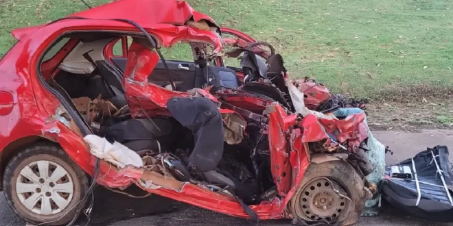 De acordo com a Polícia Rodoviária Federal (PRF), o VW Gol seguia no sentido crescente da rodovia quando invadiu a pista contrária e bateu de frente com uma carreta carregada de cimento. Com a força do impacto, o carro ficou completamente destruído.