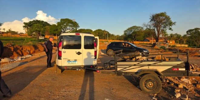 Dois homens foram flagrados pela Guarda Civil Metropolitana de Goiânia (GCM) descartando entulho de forma irregular em espaço público na Rua JB-7, Setor Finsocial, na tarde de segunda-feira (10). A ação foi registrada após denúncia recebida pela Central de Controle Operacional (CCO) e resultou na autuação dos responsáveis e na apreensão da carretinha utilizada para transportar o material, pela Agência Municipal de Meio Ambiente (AMMA).