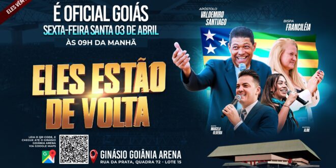 Com o tema “Eles Estão de Volta”, o encontro simboliza o retorno de nomes importantes do cenário evangélico a Goiás, despertando expectativa entre igrejas, famílias e pessoas que acompanham seus ministérios há anos.