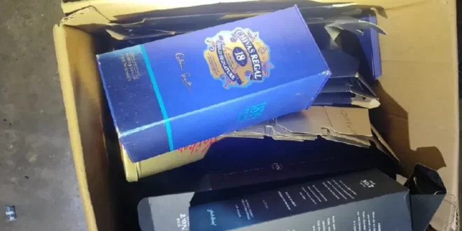 Durante a ação policial, foram apreendidas diversas garrafas já prontas para venda, incluindo rótulos como Royal Apple, Black Label, Gold Label, Johnnie Walker (em diferentes versões), White Horse, Jack Daniel’s, Buchanan’s Deluxe, Chivas Regal, Ballantine’s, Old Parr, entre outros, totalizando dezenas de unidades cheias.