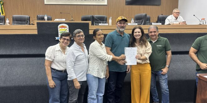 A manhã desta quarta-feira, 19 de novembro, foi marcada por um momento histórico para dezenas de famílias de Porangatu. Em uma solenidade realizada na Câmara Municipal, a Prefeitura entregou 43 títulos definitivos de propriedade por meio do Programa Terra Cidadã, sendo 31 documentos destinados aos moradores do Assentamento Salvador Allende e 12 ao Assentamento Samurai.