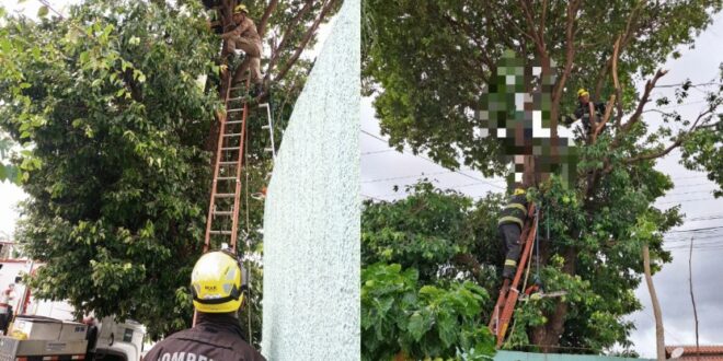 A ocorrência foi registrada por volta das 12h. Para garantir a segurança da equipe, os bombeiros precisaram aguardar o desligamento da rede elétrica pela empresa Equatorial Goiás antes de realizar o resgate.