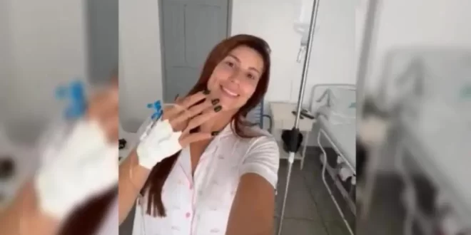 A influenciadora também precisou de internação. Ela deu entrada em um hospital no dia 12, onde permaneceu em observação durante a noite. Após a alta, seguiu com tratamento médico em casa, incluindo antibióticos e hidratação venosa.