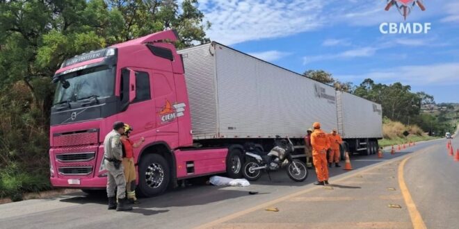 Um grave acidente deixou um motociclista morto na manhã deste domingo (26) na DF-180, em Brazlândia, sentido Padre Bernardo (GO). A colisão envolveu uma carreta e a vítima, que não teve a identidade divulgada.