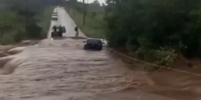 O motorista de um carro passou por momentos de grande tensão ao tentar atravessar uma ponte durante uma enchente em Luziânia, no Entorno do Distrito Federal, na segunda-feira (15). Com as fortes chuvas, um córrego transbordou e alagou a estrutura, deixando o condutor preso dentro do veículo.