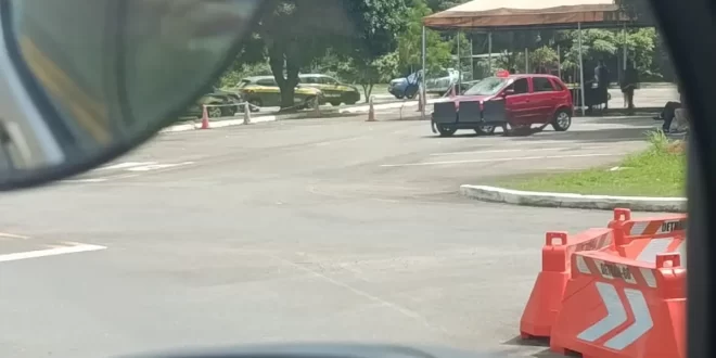 Uma motorista que realizava provas para obtenção da Carteira Nacional de Habilitação (CNH) em um carro particular perdeu o controle da direção e acabou atingindo cadeiras, além de colidir contra uma estrutura de proteção na pista do Detran Goiás, em Goiânia. Apesar do susto, ninguém ficou ferido.