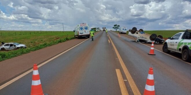 De acordo com os levantamentos iniciais, os dois veículos seguiam na mesma direção quando o Corolla, que vinha atrás, colidiu com a Saveiro. Após a batida, ambos os carros capotaram.