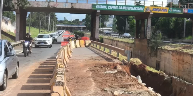 Uma nova erosão identificada na Marginal Botafogo levou à interdição parcial de uma faixa da via nas proximidades da Ponta da Rua 21, no Centro de Goiânia. O bloqueio foi realizado na tarde deste domingo (8) e já provoca lentidão no trânsito, principalmente na manhã desta segunda-feira (9/2), conforme relataram motoristas ouvidos pelo Integração News.