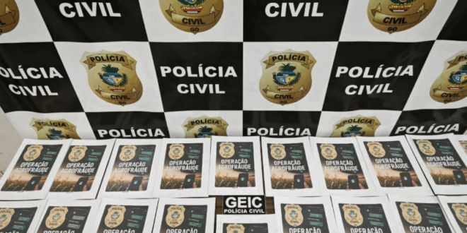 A Polícia Civil de Goiás deflagrou nesta terça-feira (8) uma megaoperação que mirou uma das maiores organizações criminosas ligadas a fraudes no agronegócio dos últimos anos. Batizada de “Operação Agrofraude”, a ação cumpriu 81 mandados judiciais — entre prisões, buscas e bloqueios de bens — em nove estados e no Distrito Federal, desarticulando um esquema que teria movimentado mais de R$ 120 milhões em cinco anos.