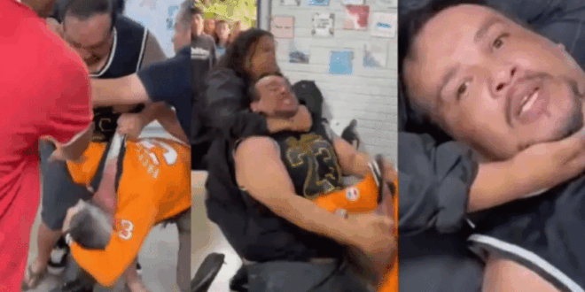 Segundo relatos, o pai da aluna, um homem de 41 anos, compareceu à escola após um desentendimento entre a filha e o professor. Ele invadiu a sala da coordenação sem autorização e, aos berros, partiu para a agressão física contra o professor, desferindo socos e chutes. Imagens registradas mostram o momento em que outras pessoas tentam conter a confusão, com ambos os envolvidos caídos no chão. A Polícia Militar foi acionada e prendeu o agressor em flagrante.