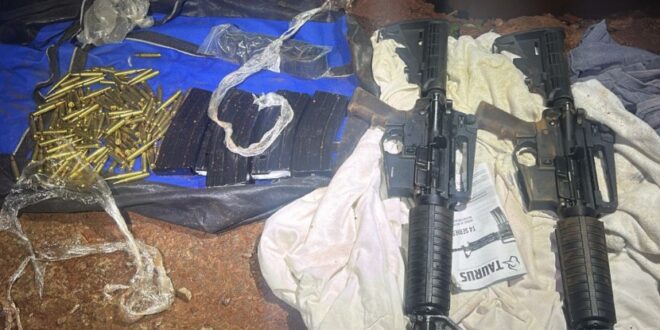 A apreensão foi realizada por equipes do Grupo de Radiopatrulha Aérea (Graer) após uma denúncia anônima apontar o local onde o armamento estaria escondido. Os militares encontraram os fuzis calibre 5.56, sete carregadores e 150 munições enterrados no quintal de uma residência, no Jardim das Hortências, na capital. O material estava acondicionado em sacos plásticos dentro de um tonel enterrado.