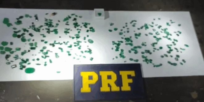 Na noite da última quarta-feira (15), a Polícia Rodoviária Federal (PRF) realizou uma importante apreensão de pedras preciosas na BR-153, em Jaraguá, Goiás. Cerca de 112 gramas de pedras, aparentemente esmeraldas, foram encontradas escondidas nas roupas de dois homens durante uma fiscalização no km 361 da rodovia.