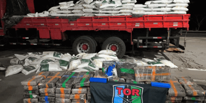 Uma ação integrada da Polícia Rodoviária Federal (PRF) e da Polícia Militar (PM) de Goiás resultou na apreensão de 1 tonelada de maconha na madrugada de domingo (31/8), na BR-153, em Morrinhos (GO). A droga estava escondida em meio a uma carga de ração animal que seguia de Astorga (PR) para Formoso do Araguaia (TO).