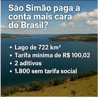 Pode soar contraditório: uma cidade banhada por um dos maiores reservatórios do Brasil, com um lago de 722 km² formado pela Usina Hidrelétrica de São Simão, ser justamente a que paga a maior conta mínima de água do país. Mas essa é a realidade confirmada pela própria concessionária: a tarifa mínima em São Simão é de R$ 100,02.