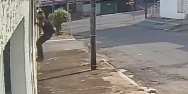Um homem suspeito de tentar invadir uma residência na Rua Vinha del Mar, no Jardim Novo Mundo, em Goiânia, acabou sendo surpreendido e agredido pelo morador após pular o muro do local. De acordo com imagens registradas por câmeras de segurança da região, o invasor foi alcançado pelo dono da casa, que usou um pedaço de madeira para contê-lo ao perceber a tentativa de assalto.