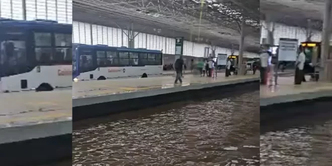 Mesmo inaugurado há pouco mais de três meses, o Terminal Praça da Bíblia, um dos principais pontos de integração do transporte coletivo da capital, deverá passar por uma nova etapa de obras nas próximas semanas. A medida foi definida após um alagamento registrado durante as chuvas da tarde da última segunda-feira (5), quando o terminal ficou completamente tomado pela água.
