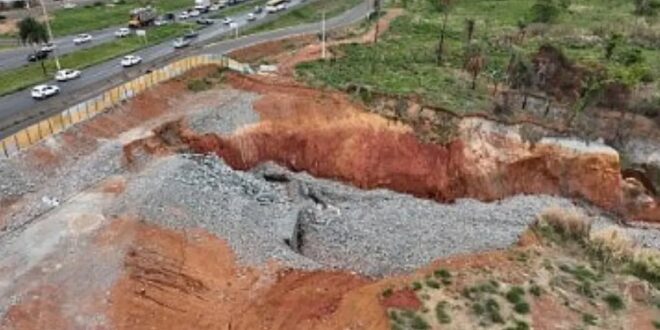 Voçoroca avança em Valparaíso de Goiás e ameaça BR-040 e shopping da cidade
